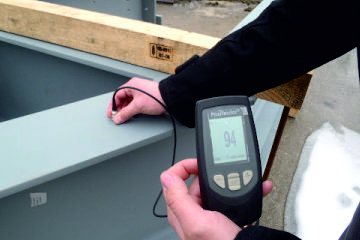 Checking the thickness of the paint layer.